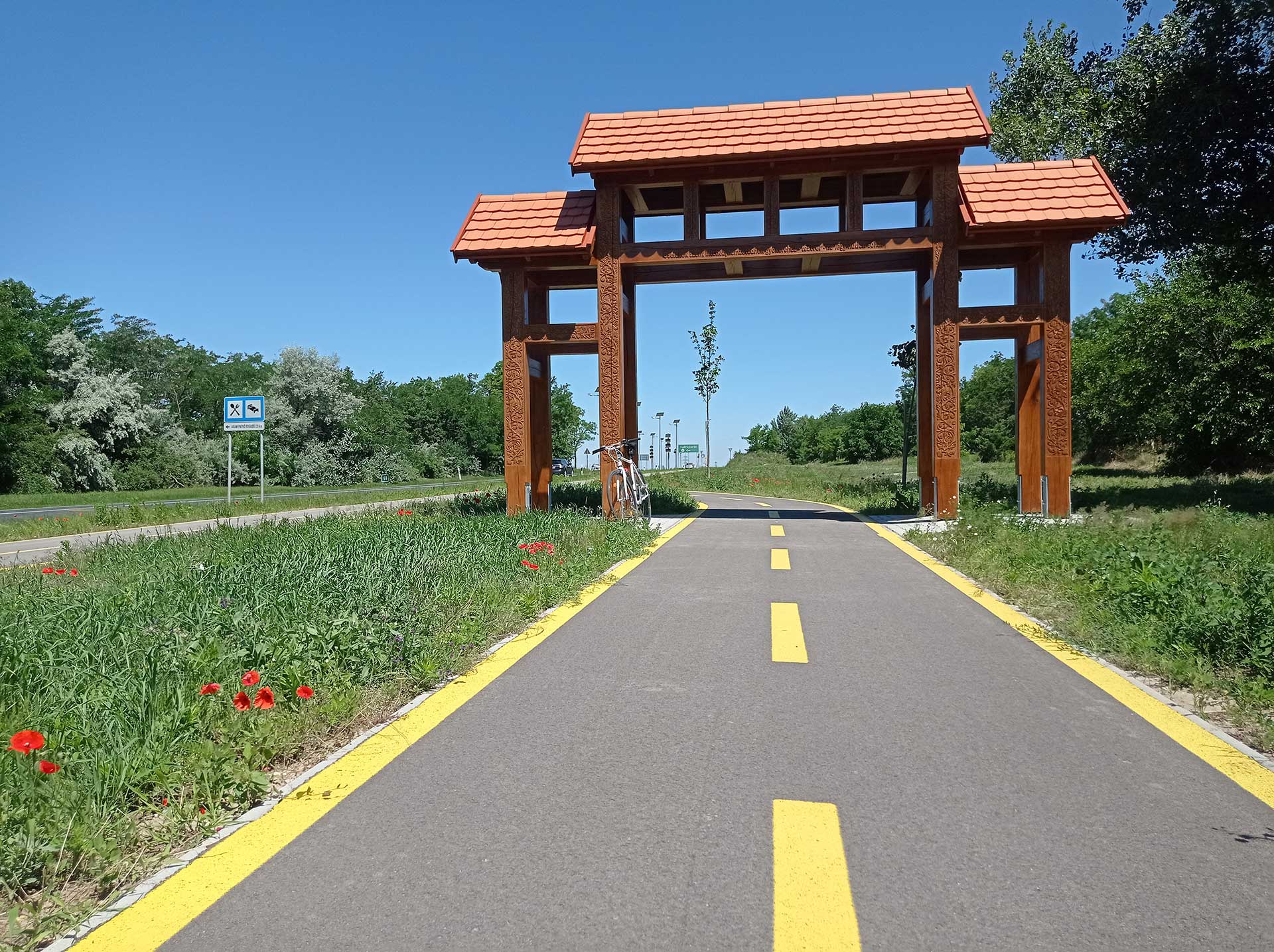 Mondjuk úgy, hogy patent! Nagyon jó minőségű aszfalton tekerhetsz végig. Ennek nagy része kerékpárút, minden más forgalomtól elválasztva, kisebb része szintén új burkolatú mezőgazdasági út. Az út mentén három pihenőt is kialakítottak, melyek közül a győrújbaráti régiópihenő a leglátványosabb. Itt egy kapun keresztül kerekezhetsz át a bringaúton haladva.